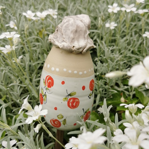 Sie wird ein 2.tes mal frostfest gebrannt, und erhält dadurch ihren einzigartigen Ausdruck und Charakter. Jede Gartentante ist immer ein kleines Unikat und absolutes Einzelstück und kann damit das ganze Jahr deinen Garten verzaubern.