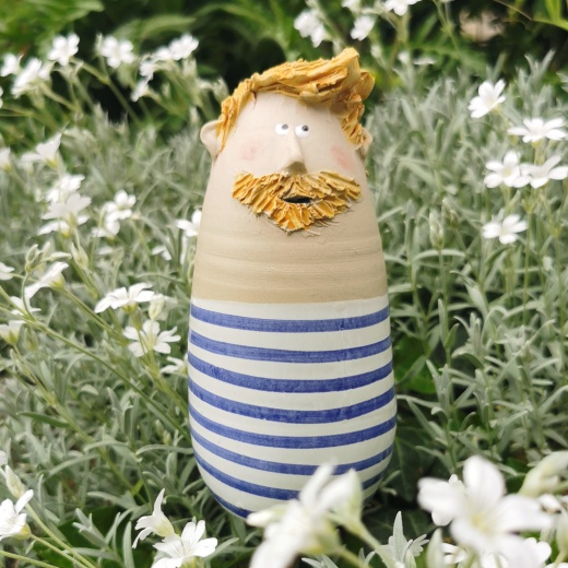 Dieser Gartenonkel wurde mit viel Liebe gedreht und modelliert, Nach dem 1. Brand wird er von mir glasiert, bemalt und gestaltet.