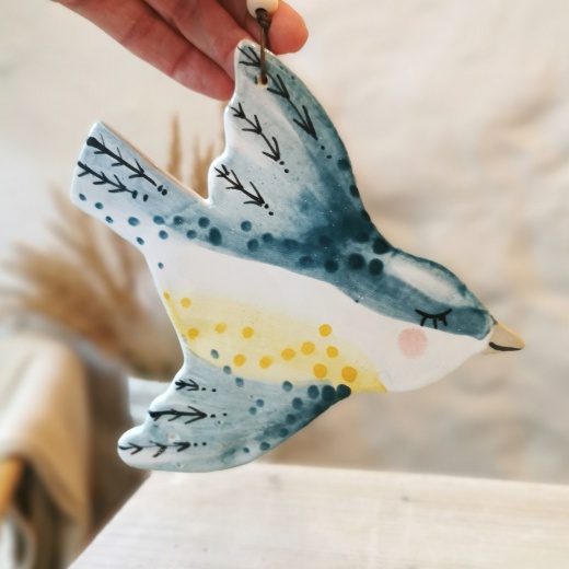 Jeder Vogel ist mit Hand und viel Liebe geformt, wird dann von mir auf beiden Seiten bemalt und gestaltet. Somit ist jeder Vogel ein Unikat und hat für einen besseren Halt, eine Schlaufe um ihn in einen Baum oder dein Fenster zu hängen