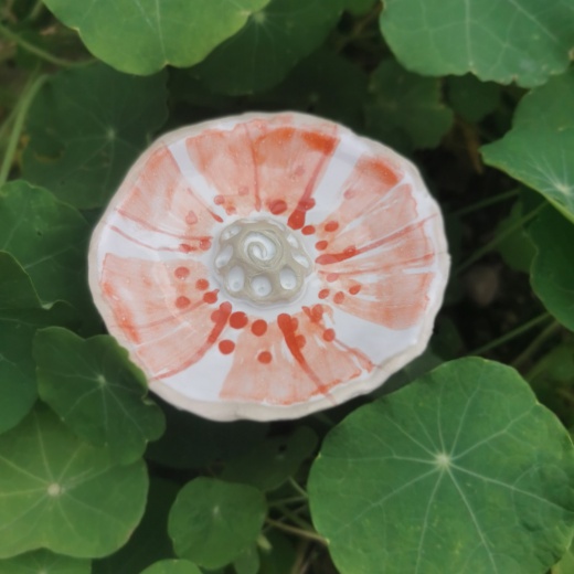 Jede Tränke ist mit Hand und viel Liebe geformt, wird dann von mir auf beiden Seiten bemalt und gestaltet. Somit ist jede Tränke ein Unikat. Im Garten kann man sie auf einen Stab stecken und sie sammelt automatisch das Regen oder Gießwasser. In der Mitte ist ein kleiner Hügel damit Gäste landen oder sich retten können.