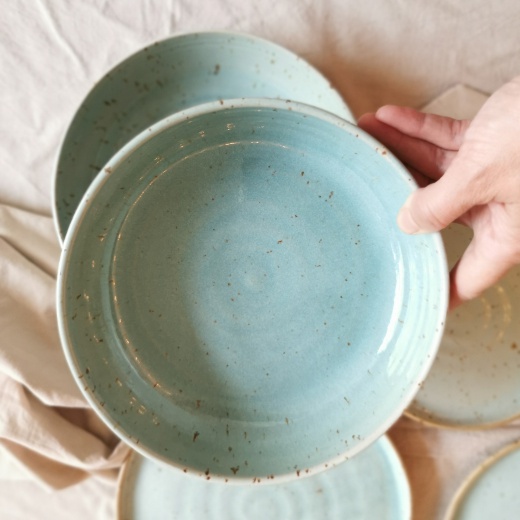 Mein Steinzeug Ton hat kleine natürliche braune Sprenkel. Die immer unterschiedlich stark ausgeprägt sind.