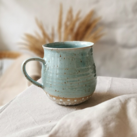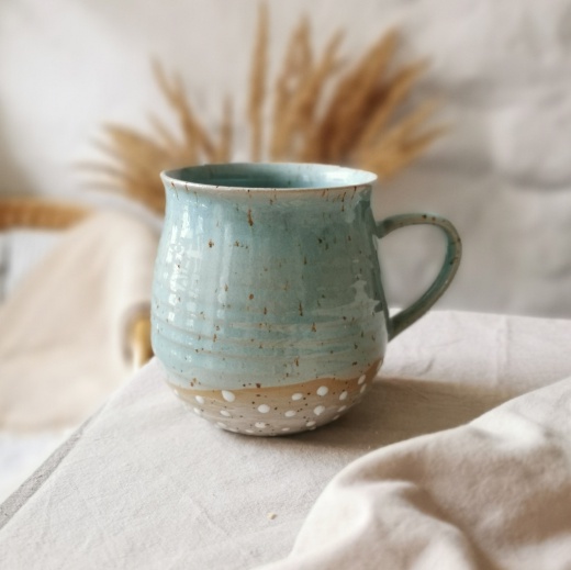 mit viel Liebe von Hand gedreht und einer türkisfarbenden Glasur die leicht glänzt.