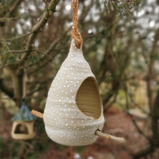Der Birdfeeder kommt mit einer dicken Jute Schlaufe und zugeschnittenen Ästchen, zum landen, bei dir an. Du musst nur noch Futter einfüllen, und ab geht die Sause im Vogel Cafe´.