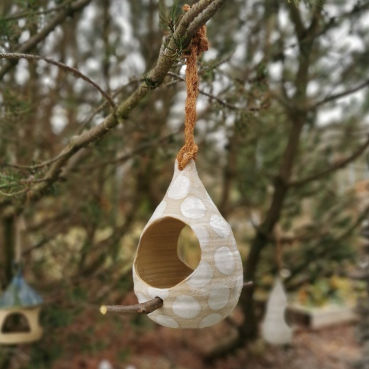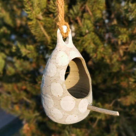 Der Birdfeeder kommt mit einer dicken Jute Schlaufe und zugeschnittenen Ästchen, zum landen, bei dir an. Du musst nur noch Futter einfüllen, und ab geht die Sause im Vogel Cafe´.