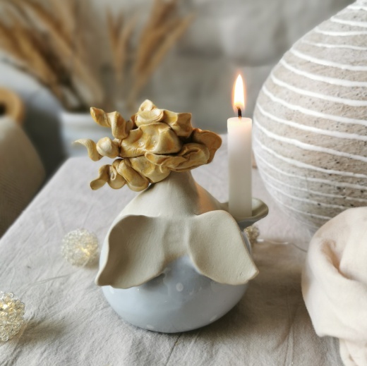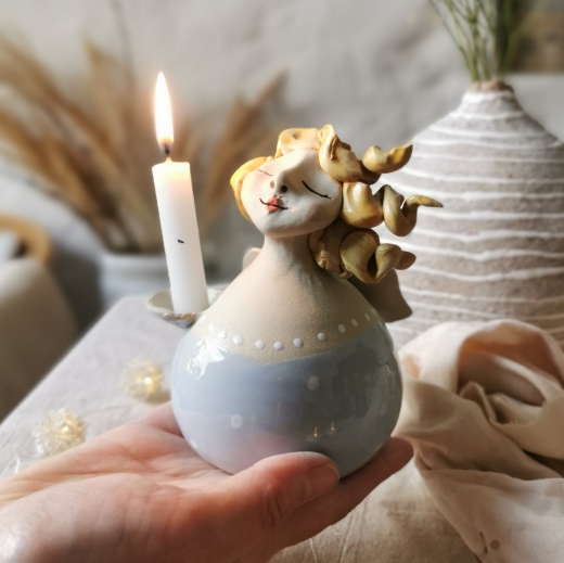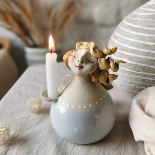 Dieser kleine Lichtengel wurde mit viel Liebe modelliert, Nach dem 1. Brand habe ich sie mit einer grauen Glasur bemalt und gestaltet. Dann ein 2.tes mal bei 1250°C dicht gebrannt. Dadurch erhalten sie ihren einzigartigen Ausdruck und Charakter. Jeder Lichtengel ist immer ein kleines Unikat und absolutes Einzelstück.