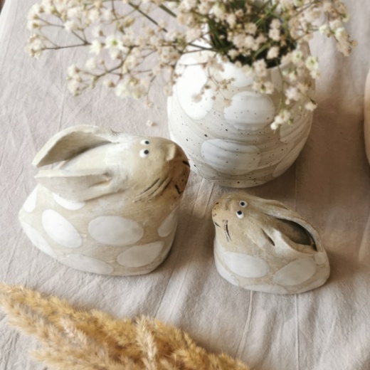 mit viel Liebe von Hand geformt und strahlend weißen Glasurpunkten.
