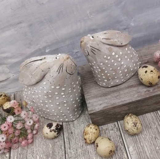 mit viel Liebe von Hand geformt und strahlend weißen Glasurpunkten.