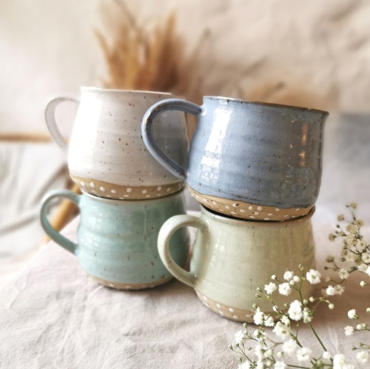 Mein Steinzeug Ton hat kleine natürliche braune Sprenkel. Die immer unterschiedlich stark ausgeprägt sind.