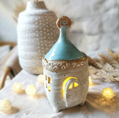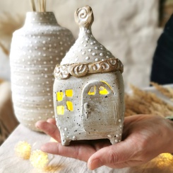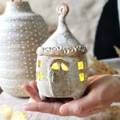 My light houses are throwing and sculpted, you can decorate them indoors or outdoors with tea lights or string lights.