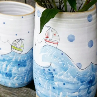 Im Moment fertige ich Stücke mit Majolika Malerei an und Keramik die schlicht daher kommt. Ich möchte mich nicht festlegen auf ein Motiv oder eine Dekortechnik. Ich experimentiere gerne.