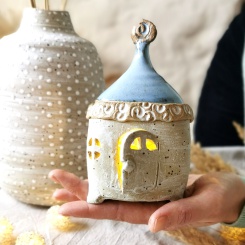 My light houses are throwing and sculpted, you can decorate them indoors or outdoors with tea lights or string lights.