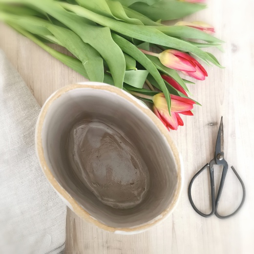 mit viel Liebe von Hand geformt und einer creme weißen Glasur die leicht glänzend scheint.