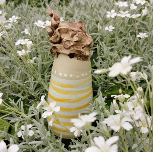 Diese Gartentante wurde mit viel Liebe gedreht und modelliert, Nach dem 1. Brand wird sie von mir glasiert, bemalt und gestaltet.