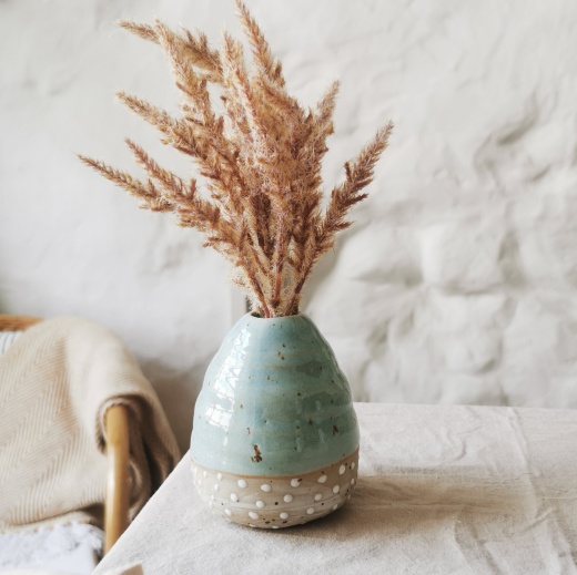 mit viel Liebe von Hand gedreht und einer türkisfarbenden Glasur die leicht glänzt.