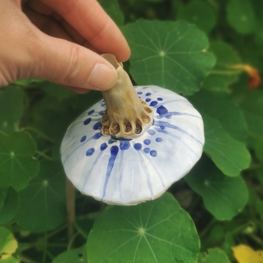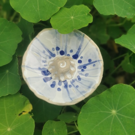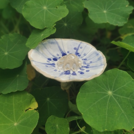 Jede Tränke ist mit Hand und viel Liebe geformt, wird dann von mir auf beiden Seiten bemalt und gestaltet. Somit ist jede Tränke ein Unikat. Im Garten kann man sie auf einen Stab stecken und sie sammelt automatisch das Regen oder Gießwasser. In der Mitte ist ein kleiner Hügel damit Gäste landen oder sich retten können.