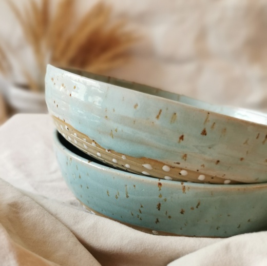 mit viel Liebe von Hand gedreht und einer türkisfarbenden Glasur die leicht glänzt.