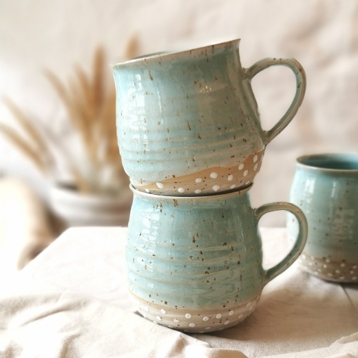mit viel Liebe von Hand gedreht und einer türkisfarbenden Glasur die leicht glänzt.
