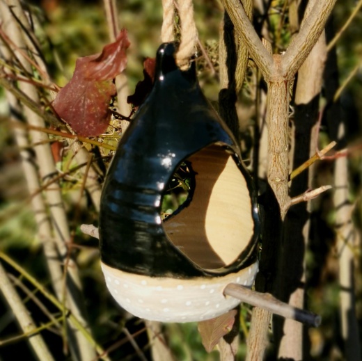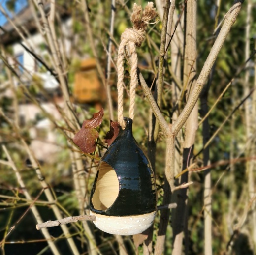 Der Birdfeeder kommt mit einer dicken Jute Schlaufe und zugeschnittenen Ästchen, zum landen, bei dir an. Du musst nur noch Futter einfüllen, und ab geht die Sause im Vogel Cafe´.