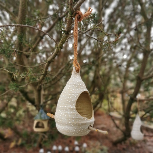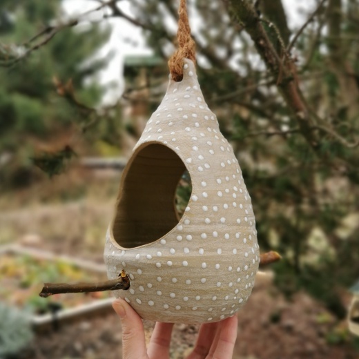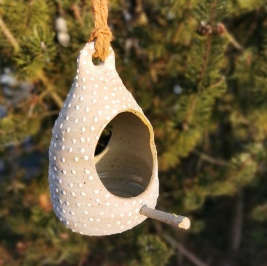 Der Birdfeeder kommt mit einer dicken Jute Schlaufe und zugeschnittenen Ästchen, zum landen, bei dir an. Du musst nur noch Futter einfüllen, und ab geht die Sause im Vogel Cafe´.