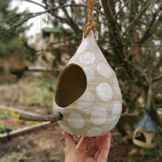 Der Birdfeeder kommt mit einer dicken Jute Schlaufe und zugeschnittenen Ästchen, zum landen, bei dir an. Du musst nur noch Futter einfüllen, und ab geht die Sause im Vogel Cafe´.