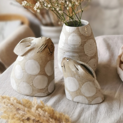 mit viel Liebe von Hand geformt und strahlend weißen Glasurpunkten.