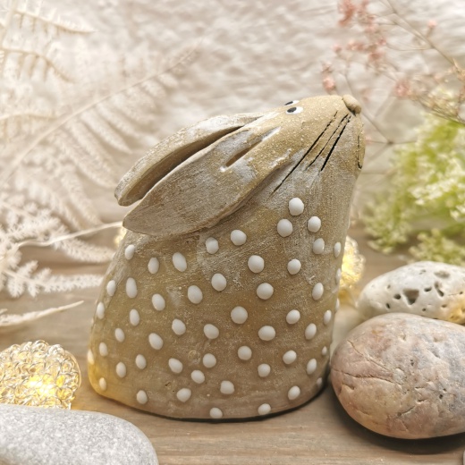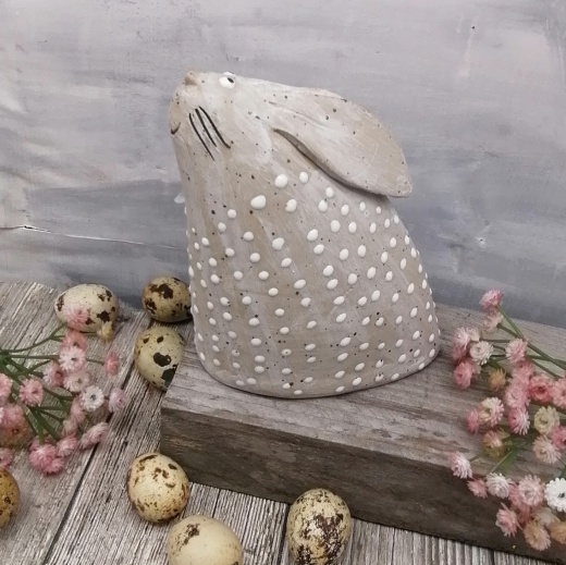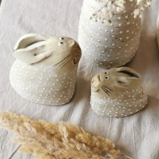 mit viel Liebe von Hand geformt und strahlend weißen Glasurpunkten.