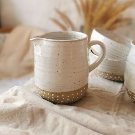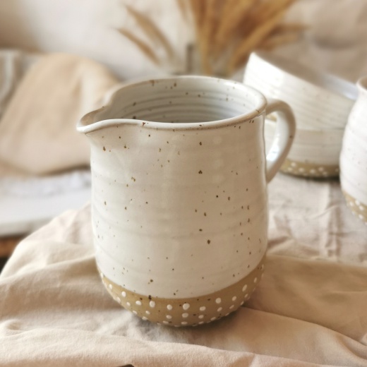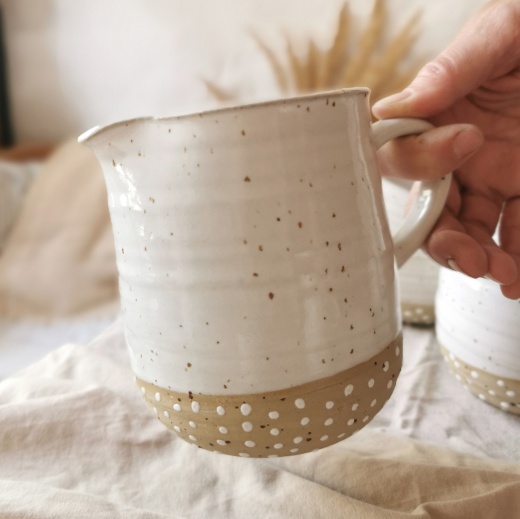 mit viel Liebe von Hand gedreht und einer creme weißen Glasur die leicht glänzend scheint.