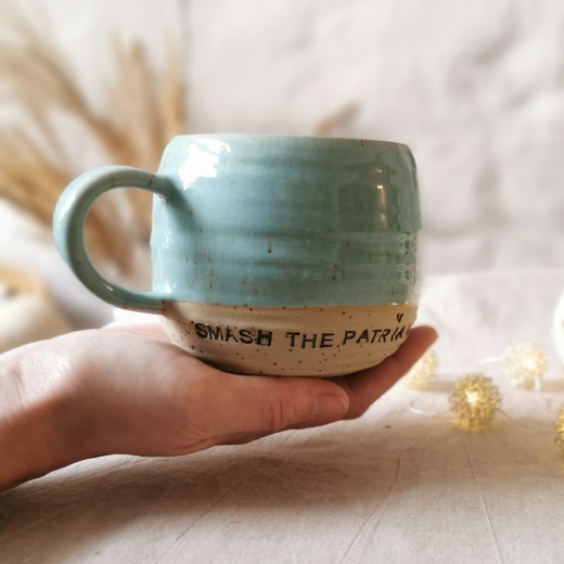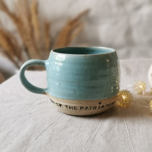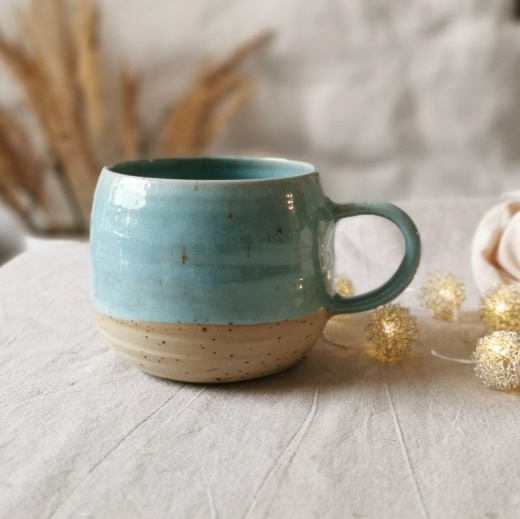 Diese Tasse wurde mit viel Liebe von Hand gedreht und einer türkisfarbenden Glasur die leicht glänzend scheint, gebrannt.