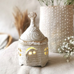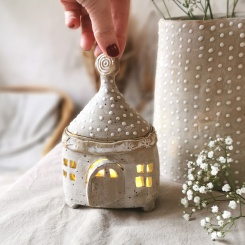 My light houses are throwing and sculpted, you can decorate them indoors or outdoors with tea lights or string lights.